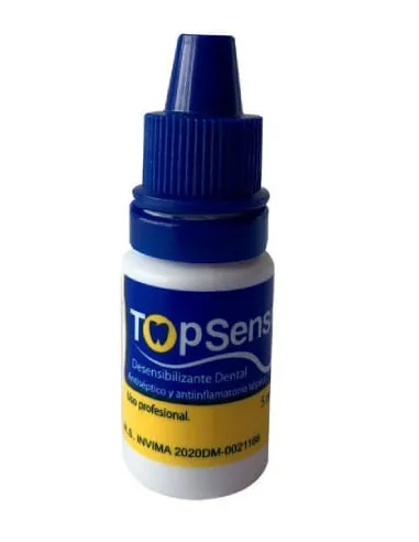 TopSensy es un desensibilizante dental antiséptico, antiinflamatorio de uso tópico; indicado para tratamientos de periodoncia y endodoncia, para el proceso operatorio (durante y después). Esto con el fin de reducir la hipersensibilidad de las zonas tratadas a nivel bucal