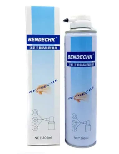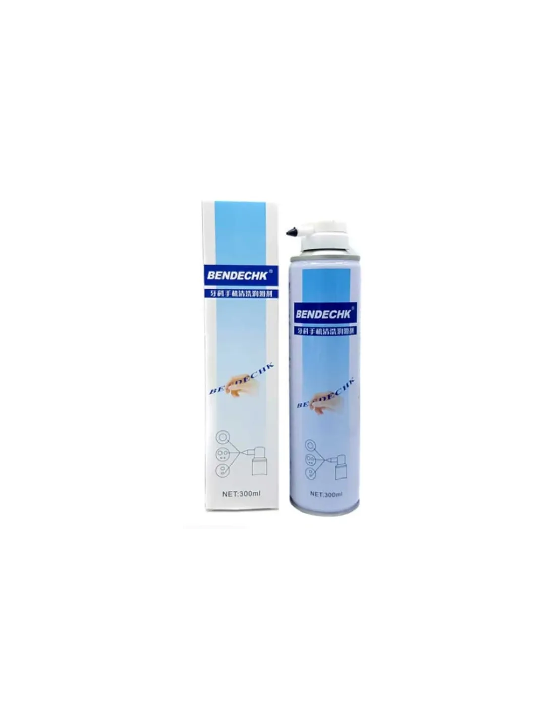 Modo de uso: Mantén la boquilla orientada hacia abajo, dirige el aplicador hacia la entrada de aire de la pieza y presiona brevemente el botón (aproximadamente 1 segundo) para generar una limpieza en forma de niebla