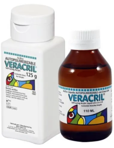 Veracril® Acrilico Autopolimerizable Jaspeado es una resina Acrílica, polímero más monómero en diferentes tonos de color rosado, indica para reparación y elaboración de bases dentales y parciales, plato base o cubetas individuales. ROSADO JASPD VR1